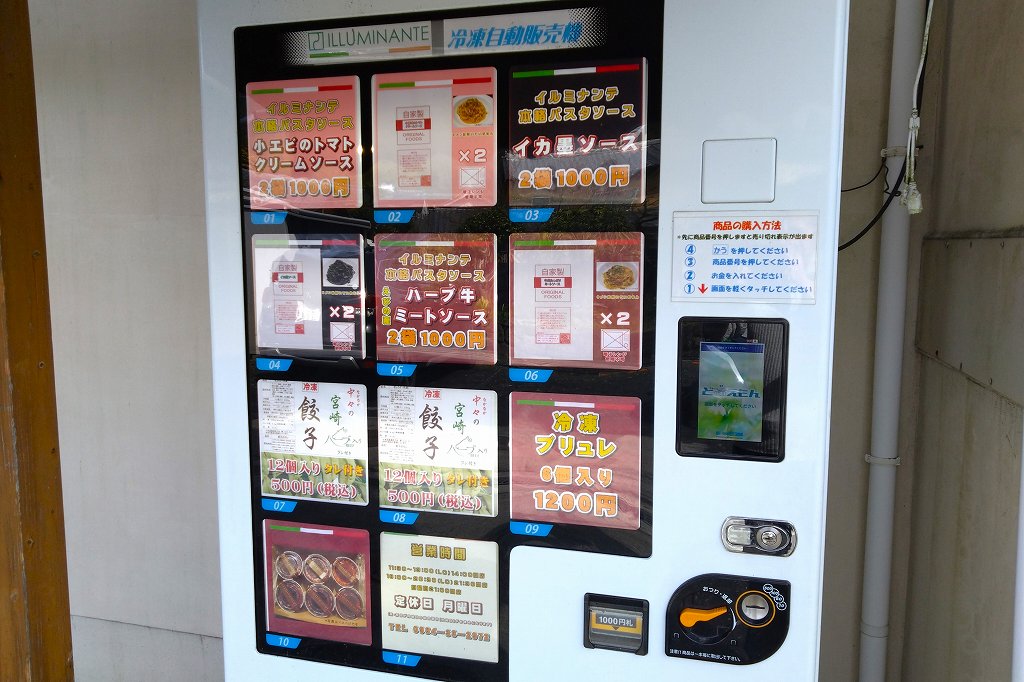 公式サイトには、自家製ピザやパスタソース、デザートなどを販売する冷凍自販機(24時間稼働)を店舗前駐車場に設置している案内があります。