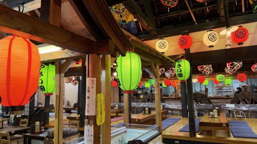 山椒茶屋えびの店は座席が多く、団体客にも対応できる広さがある。