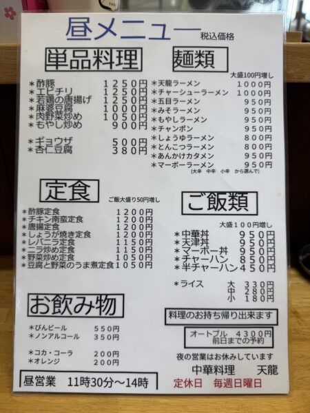 天竜と言えば、語らずにはいられないのがそのボリューム感。定食から丼物、麺類に至るまで“一食で十分満腹になる”と言われるほどの満足感があります。 特に人気のメニューは、たっぷりの具材が乗った特製丼や、ガッツリ系の肉料理。テーブルに運ばれてきた瞬間に思わず写真を撮りたくなるような迫力があり、SNSでも話題になるほどです。 しかし、単に量が多いだけではなく、食べ進めるほどに味のバランスが計算されていることがわかります。最後の一口まで飽きずに楽しめるよう工夫されているのが、長年のファンを惹きつけ続けている理由です。